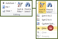 a. Home tab, Editing group, click Sort & Filter, click Filter