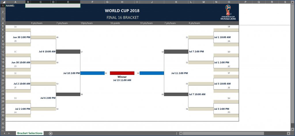 Everything from here on out is “win or go home” and it all starts on Saturday… which means you and your pool participants need to download the FREE 2018 World Cup Entry Form Round 2 updated spreadsheet on the Tips & Tricks page of www.ExcelRainMan.com. Make sure all pool participants get their completed Round 2 forms to the Pool Manager before 10am Eastern on Saturday. Time is of the essence!!